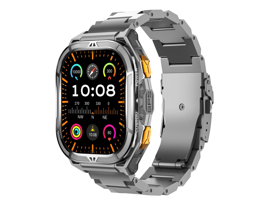Pametni sat ARMODD Titan GPS ističe se na vašem zapešću zahvaljujući velikom 1,96″ AMOLED zaslonu s funkcijom always-on. Metalno kućište je precizno izrađeno i izuzetno izdržljivo, pogodno i za zahtjevne uvjete. Zahvaljujući certifikatu 5ATM (uključujući IP68), s ovim satom možete bez brige i plivati.